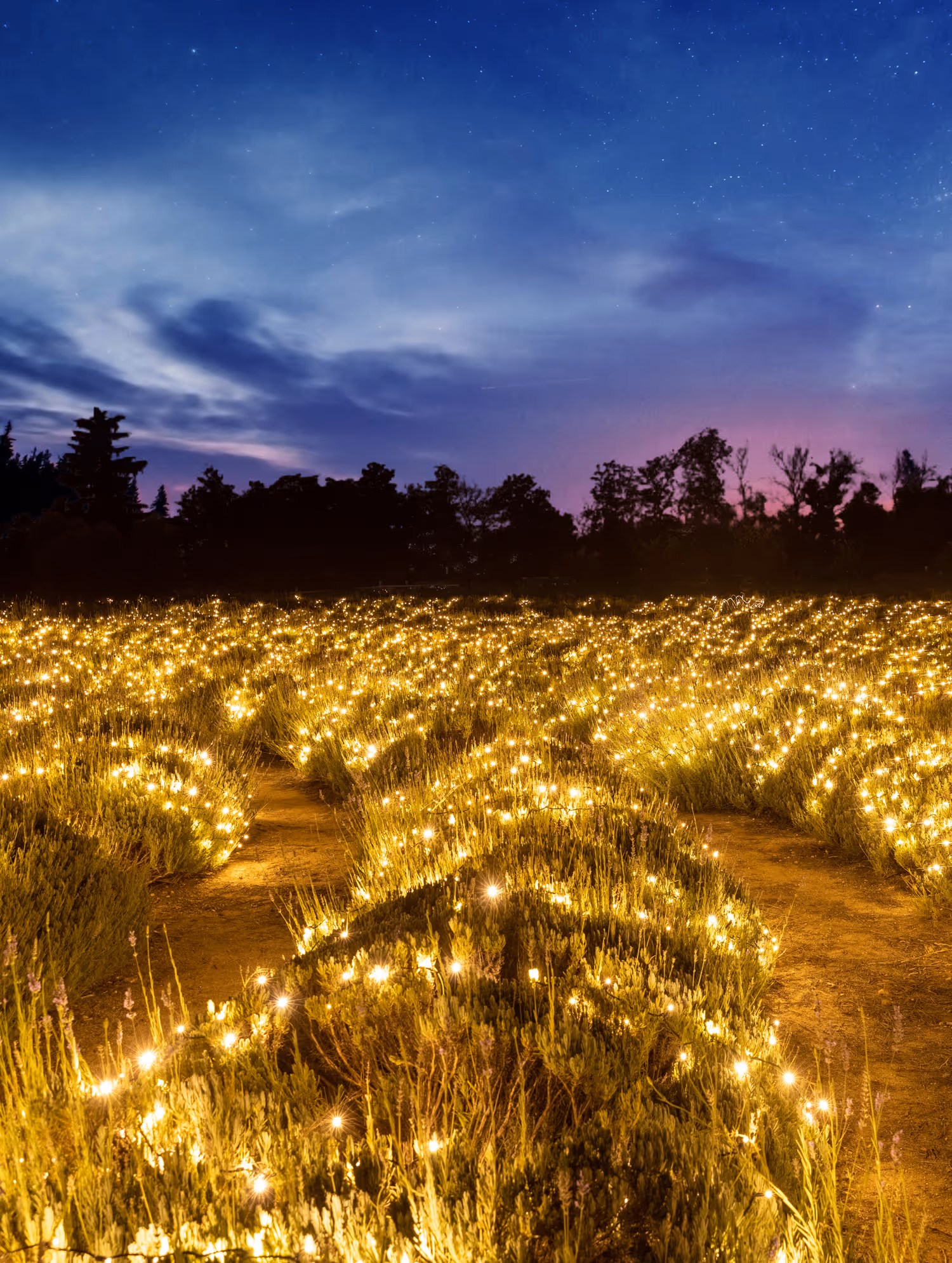 While the lavender is no longer in bloom, take a peaceful stroll through a sparkling landscape of twinkling lights.