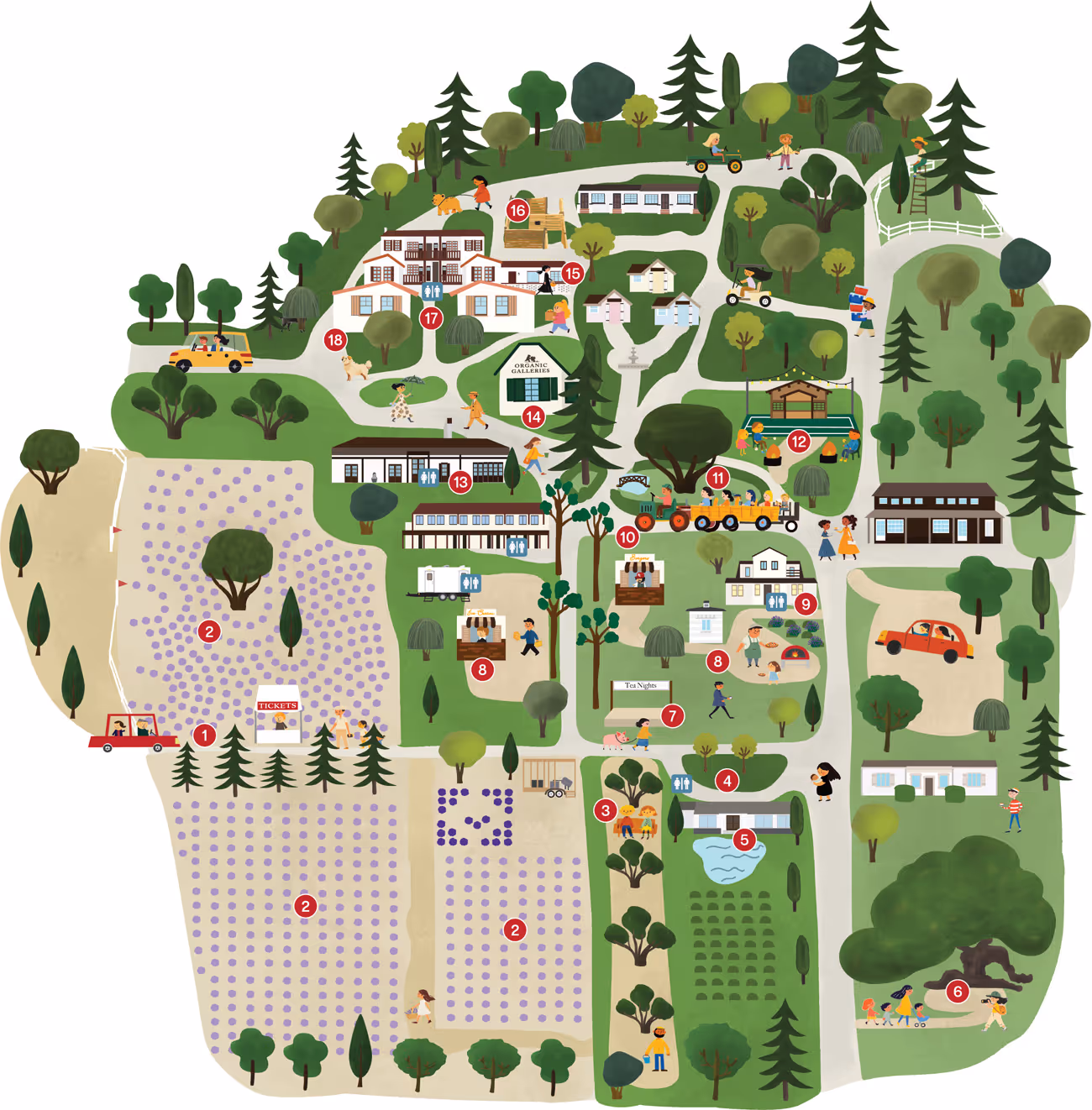 Seven farm-themed boutique shops offering a curated mix of experiences and treats. Browse specialty retail, enjoy coffee from the café, try soft-serve tea ice cream, visit the provisions store, and explore limited-edition, tea-scented candles created exclusively for the festival. Don’t miss the on-site photo booth for a fun keepsake.
